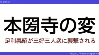 6 戦国時代 本圀寺の変 とは? 足利義昭暗殺の危機と二条御所造営への流れ 本圀寺の変とは、1569年に三好三人衆が京都の本圀寺にいた足利義昭を襲撃した戦いです。事件の背景、三好勢力の動き、戦いの経緯、信長と義昭の政権に与えた影響まで分かりやすく解説します。 2026.03.15 6 戦国時代